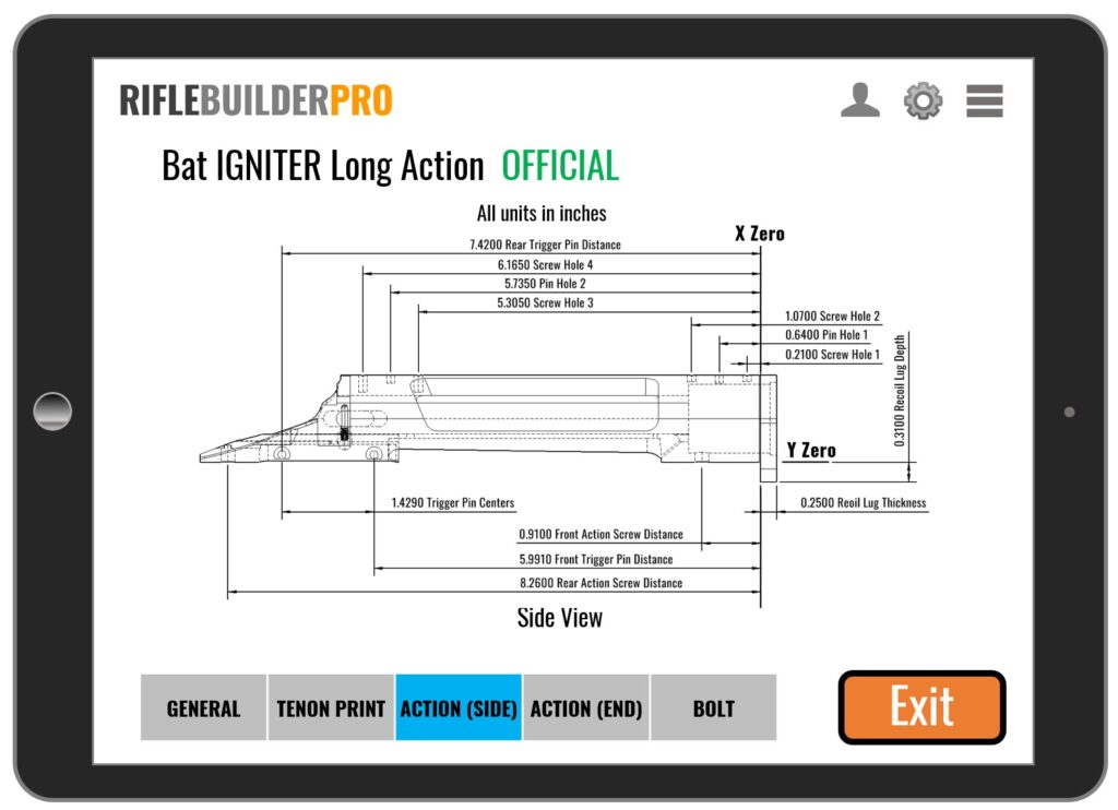 After basic integration is performed, Rifle Builder PRO will be eventually adding support for a “premium experience” with your rifles and actions. This Advanced Integration includes to-scale 2D diagrams that are matched to your products, and additional data so that rifle builders can perform detailed custom gunsmithing jobs with your products.