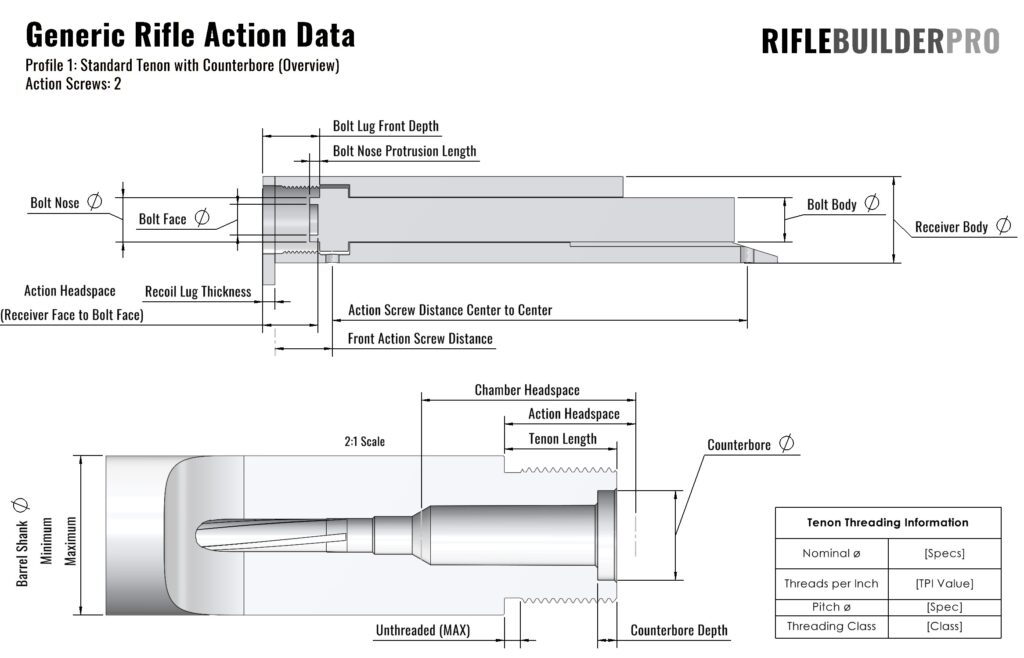 Basic Information Exchange: If your company manufactures rifle actions, we will share forms that you can fill out in order to natively support your actions in Rifle Builder Pro. Only basic information and general specifications are needed for basic support in Rifle Builder PRO if your actions can be represented with one of the standard tenon profiles in Rifle Builder PRO.